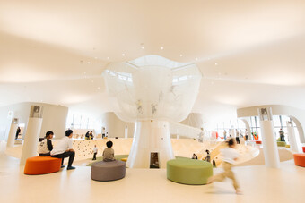 「地域がら冬場は雪が深く、屋外で遊ぶ場所が少なくなるため、屋内遊び場ニーズは高い・外観形状も特徴的で内部も広く、子どもたちが自由に遊び回れる場所として各装置がうまく配置されている。自分の居場所をみつけ、各々の遊びが選べる点を高く評価した。」(選考理由)